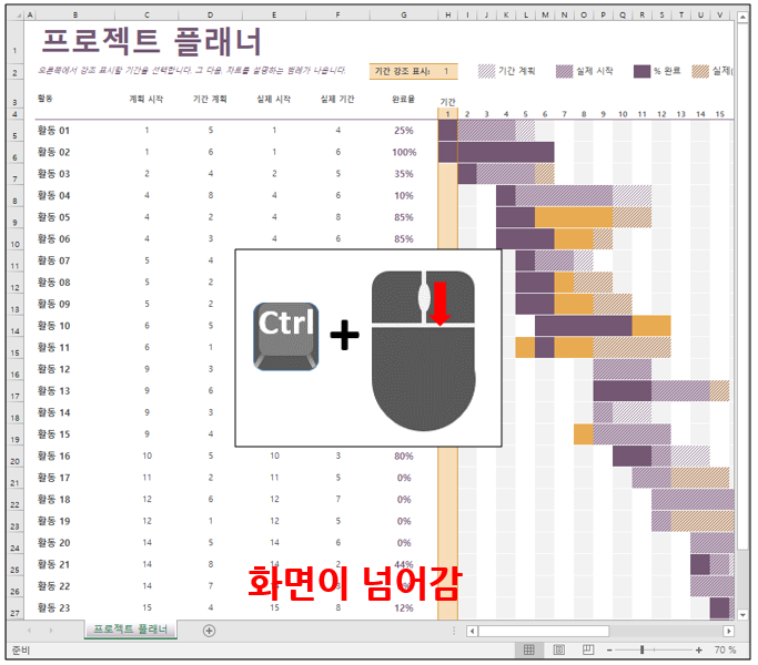 [Ctrl + 마우스 휠]을 이용하여 화면을 크게 만들었는데 아래 부분 일부가 넘어가 버렸습니다.